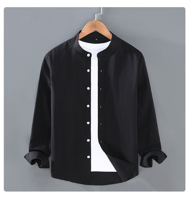 The thin men's shirt with stand-up collar offers a sophisticated and breathable choice for an elegant look. This shirt is ideal for both formal and casual occasions, combining comfort and style.